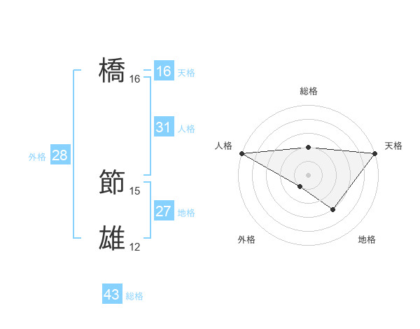 橋 節雄さんの人格は31画の5点!