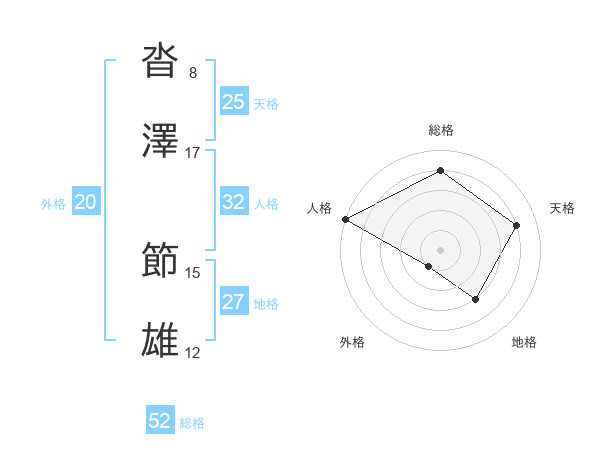沓澤 節雄さんを姓名の画数から五運を鑑定