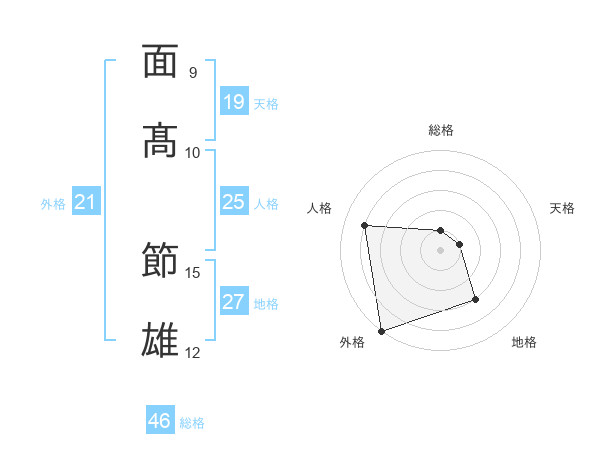 面髙 節雄さんの外格は21画の5点!