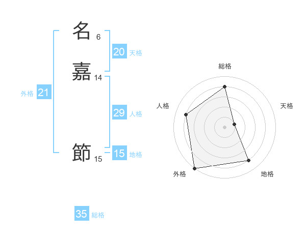 名嘉 節さんの外格は21画の5点!