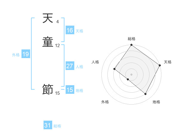 天童 節さんの総格は31画の5点!