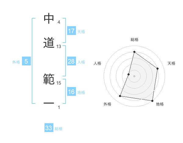 中道 範一さんの天格は17画の4点!