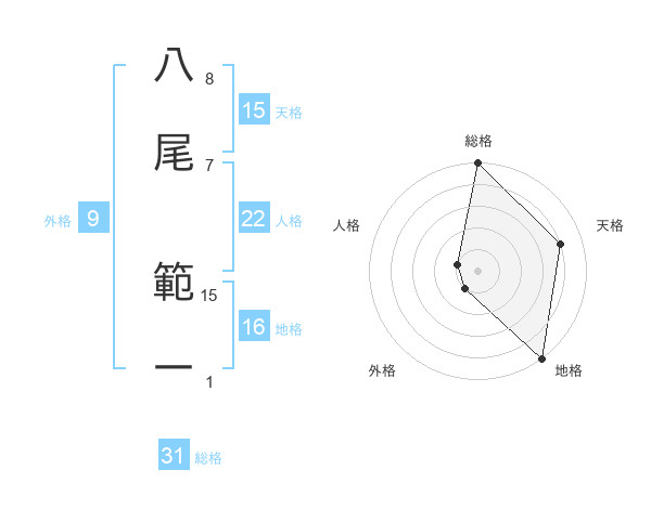 八尾 範一さんの総格は31画の5点!