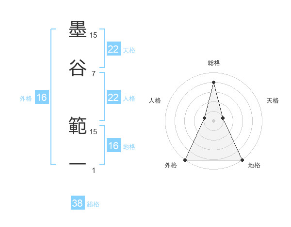 墨谷 範一さんの総格は38画の4点!