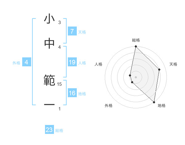 小中 範一さんの総格は23画の5点!