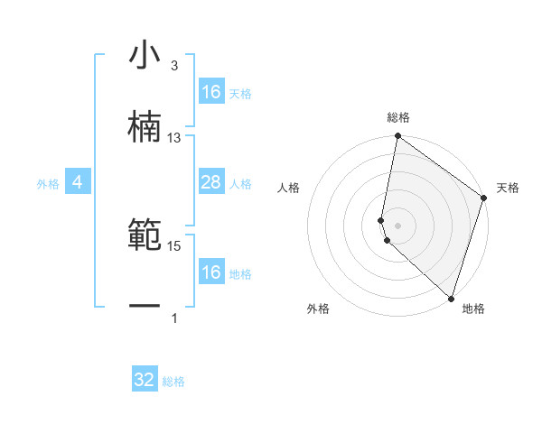小楠 範一さんの総格は32画の5点!