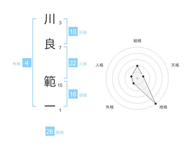 川良 範一さんの総格は26画の2点!