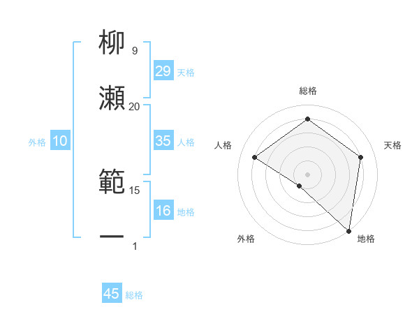 柳瀬 範一さんの総格は45画の4点!