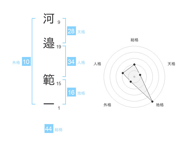 河邉 範一さんの総格は44画の2点!