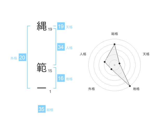 縄 範一さんの天格は19画の1点!