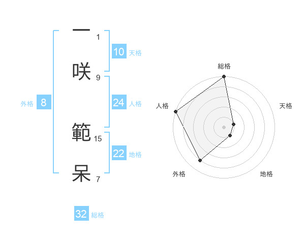 一咲 範呆さんの総格は32画の5点!