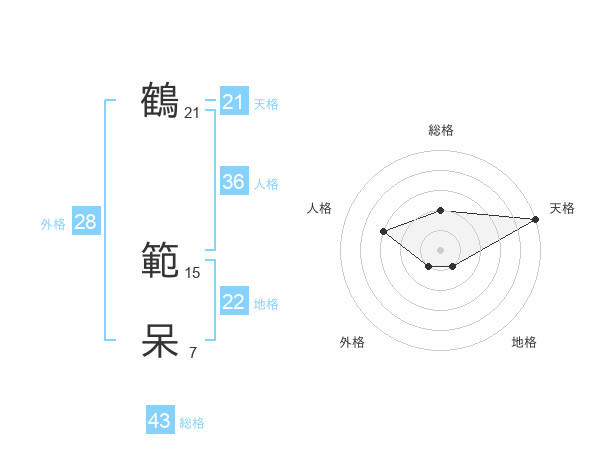 鶴 範呆さんの天格は21画の5点!