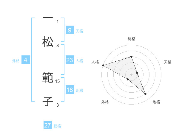 一松 範子さんの総格は27画の3点!