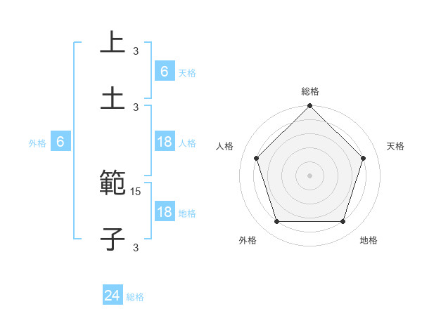 上土 範子さんの総格は24画の5点!