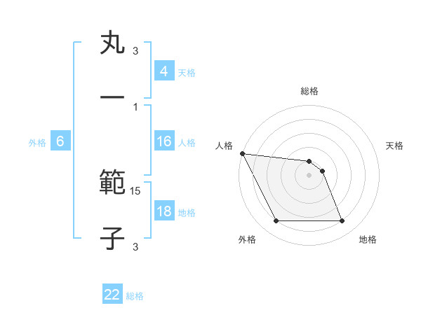 丸一 範子さんの総格は22画の1点!