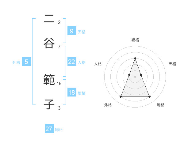 二谷 範子さんの総格は27画の3点!