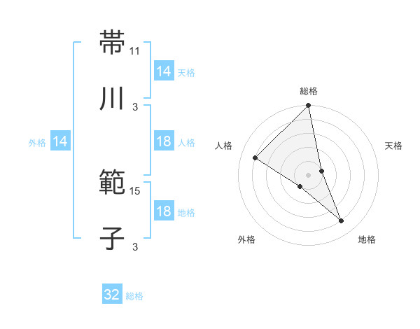 帯川 範子さんの総格は32画の5点!