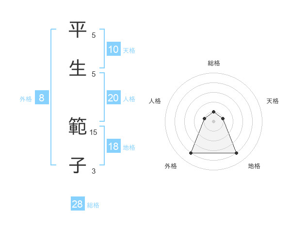 平生 範子さんの外格は8画の4点!