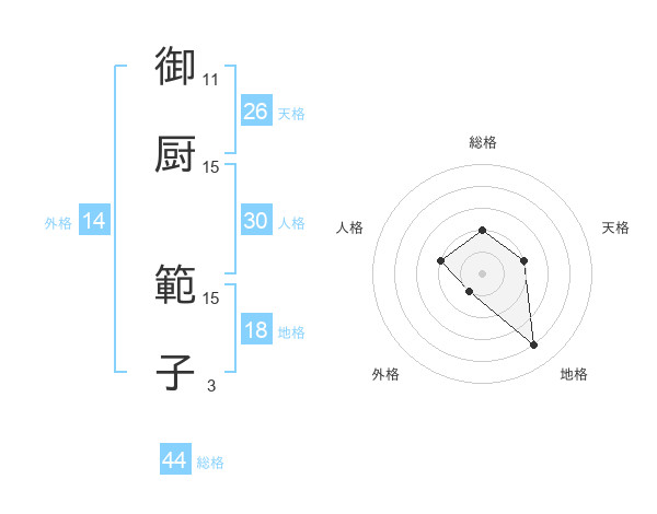 御厨 範子さんの総格は44画の2点!