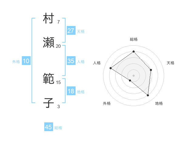 村瀬 範子さんを姓名の画数から五運を鑑定