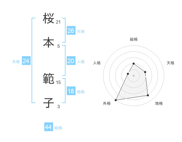 桜本 範子さんの外格は24画の5点!