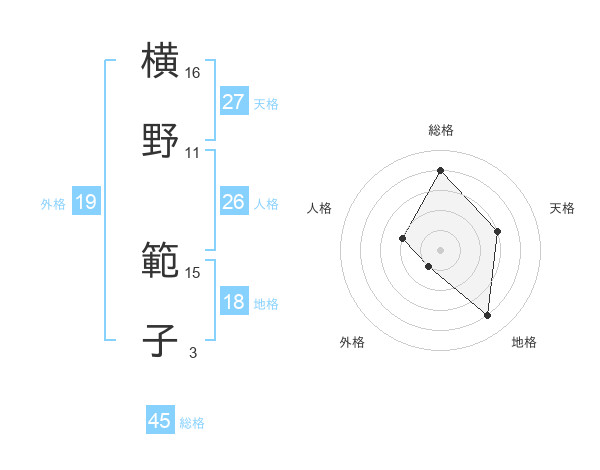 横野 範子さんの総格は45画の4点!