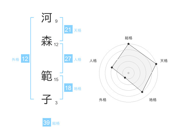 河森 範子さんの総格は39画の5点!