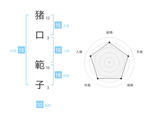 猪口 範子さんの天格は15画の4点!