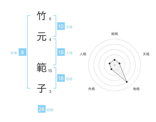 竹元 範子さんの地格は18画の4点!