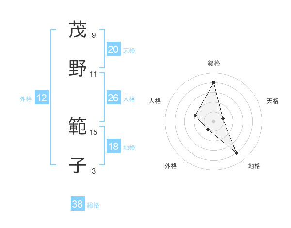 茂野 範子さんの地格は18画の4点!