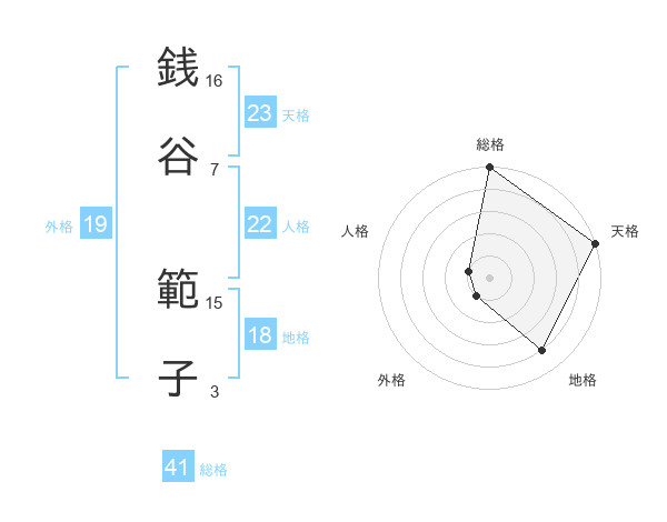 銭谷 範子さんの総格は41画の5点!