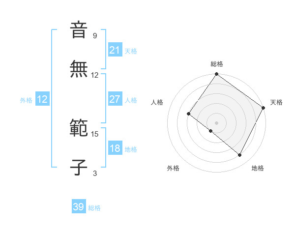音無 範子さんの総格は39画の5点!