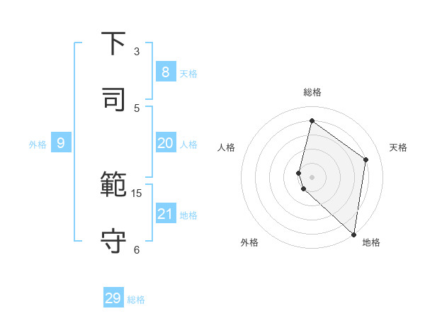 下司 範守さんの地格は21画の5点!