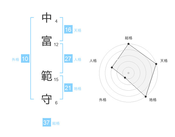 中富 範守さんの天格は16画の5点!