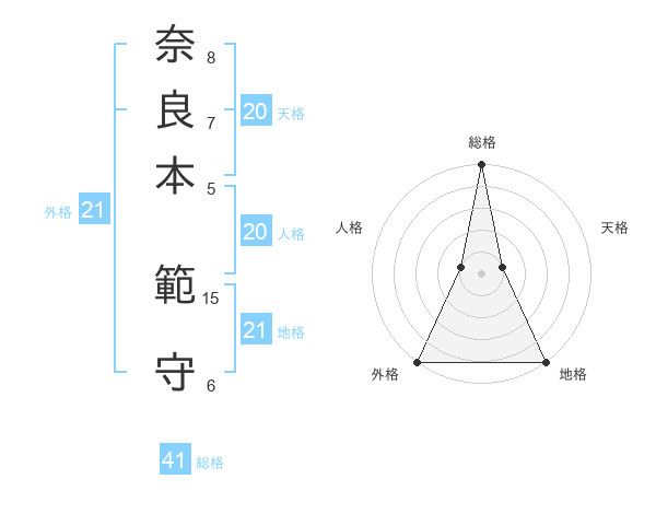 奈良本 範守さんを姓名の画数から五運を鑑定