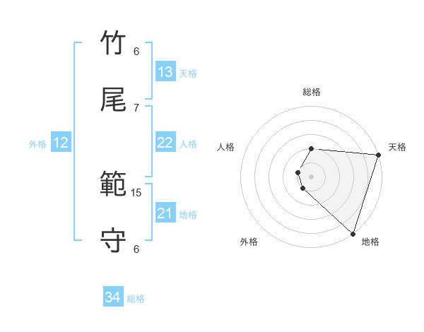 竹尾 範守さんを姓名の画数から五運を鑑定