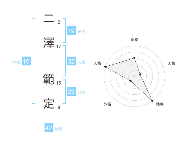 二澤 範定さんの総格は42画の3点!