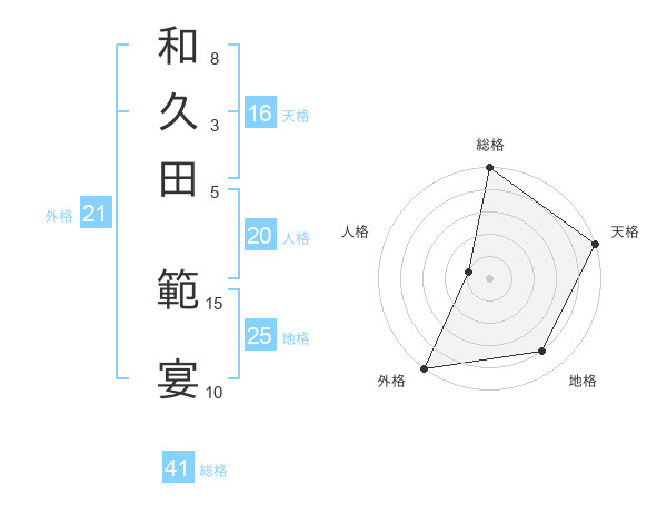 和久田 範宴さんの外格は21画の5点!