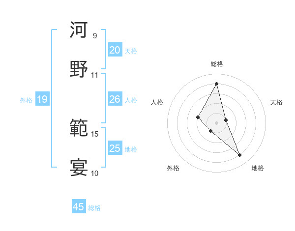 河野 範宴さんの総格は45画の4点!