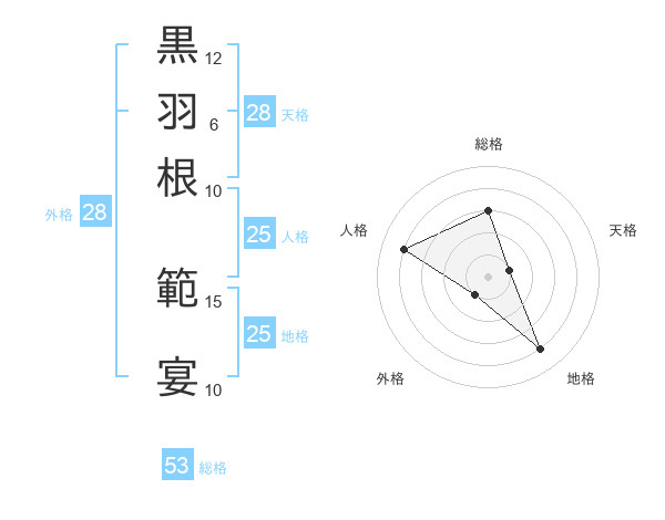 黒羽根 範宴さんを姓名の画数から五運を鑑定