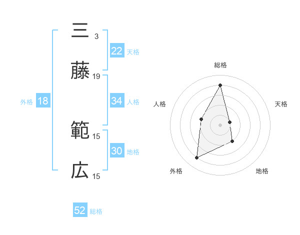三藤 範広さんの総格は52画の4点!