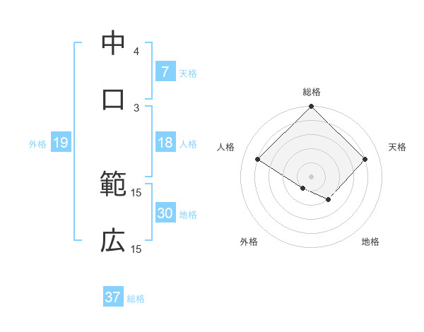 中口 範広さんの総格は37画の5点!