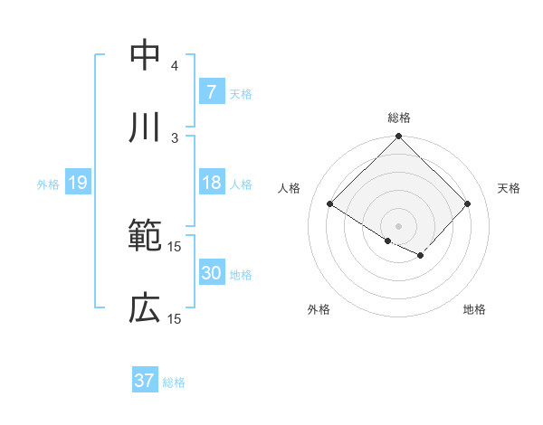 中川 範広さんの総格は37画の5点!