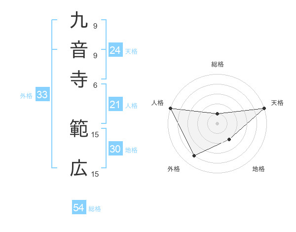 九音寺 範広さんの総格は54画の1点!