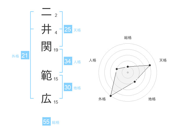 二井関 範広さんの外格は21画の5点!