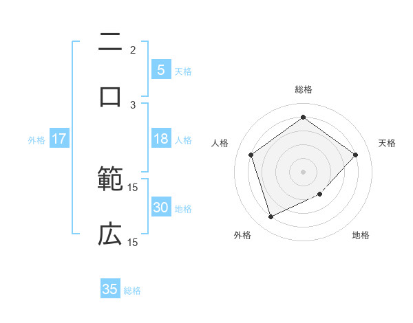 二口 範広さんの総格は35画の4点!