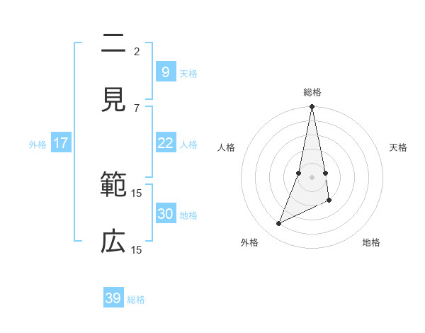 二見 範広さんの総格は39画の5点!