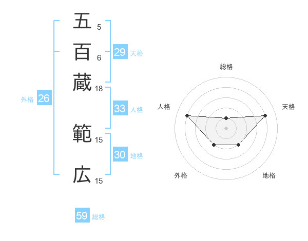 五百蔵 範広さんを姓名の画数から五運を鑑定