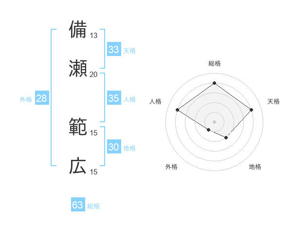 備瀬 範広さんの総格は63画の4点!
