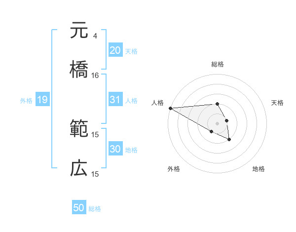 元橋 範広さんの総格は50画の2点!